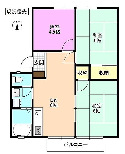 | 間取り | 3DK(和 6 洋 4.5・6 DK 8) | 築年月(築年数) | 1985年7月(築40年5ヶ月) |