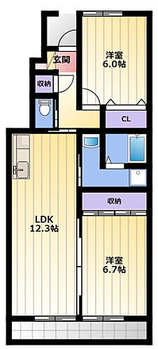 2LDK(LDK 12.3 洋 6.7・6) |