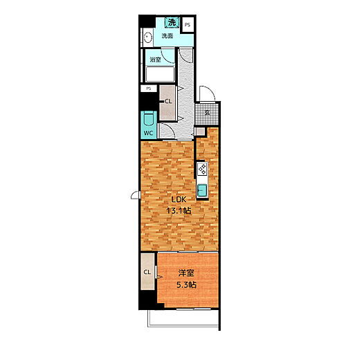 | 間取り | 1LDK(LDK 13.1 洋 5.3) | 築年月(築年数) | 2018年9月(築7年4ヶ月) |