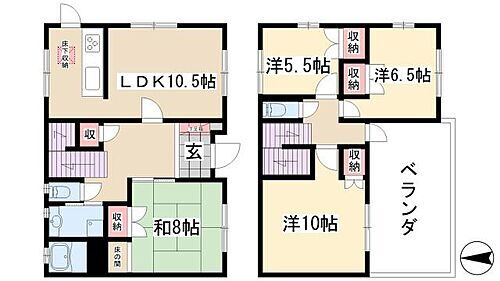 | 設備 | 上水道・都市ガス・本下水・バス・トイレ別・シャワー・コンロ2口以上・給湯・エアコン・床下収納・室内洗濯機置き場・専用庭・バルコニー・フローリング・駐輪場・バイク置き場・温水洗浄便座・カウンターキッチン・洗面所独立・クローゼット・シューズボックス | ||||