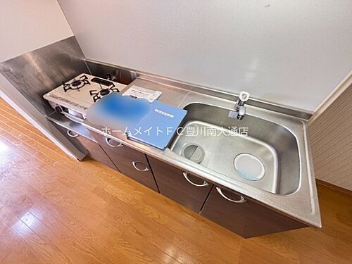 | 設備 | 上水道・プロパンガス・本下水・バス・トイレ別・シャワー・給湯・追焚機能・シャンプードレッサ・エアコン・室内洗濯機置き場・BS端子・バルコニー・駐輪場・モニタ付インターホン・洗面所独立・インターネット無料・クローゼット・シューズボックス・照明器具 | ||||
