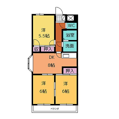 | 間取り | 3DK(DK 8 和 6 洋 6・5.5) | 築年月(築年数) | 1997年6月(築28年7ヶ月) |