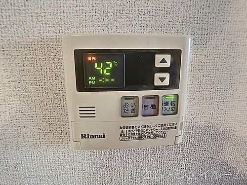 | 設備 | プロパンガス・バス・トイレ別・追焚機能・シャンプードレッサ・エアコン・ウォークインクローゼット・室内洗濯機置き場・BS端子・フローリング・駐輪場・モニタ付インターホン・温水洗浄便座・カウンターキッチン・浴室乾燥機・洗面所独立・シューズボックス | ||||