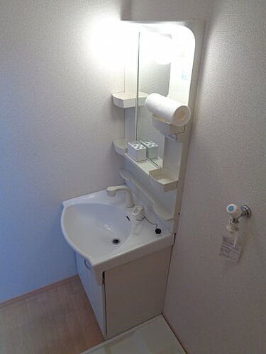 プロパンガス・バス・トイレ別・ガスコンロ可・シャンプードレッサ・エアコン・室内洗濯機置き場・BS端子・バルコニー・フローリング・駐輪場・モニタ付インターホン・温水洗浄便座・洗面所独立・シューズボックス |