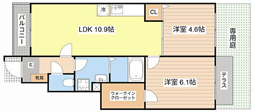 | 間取り | 2LDK(LDK 10.9 洋 6.1・4.6) | 築年月(築年数) | 2003年4月(築22年9ヶ月) |