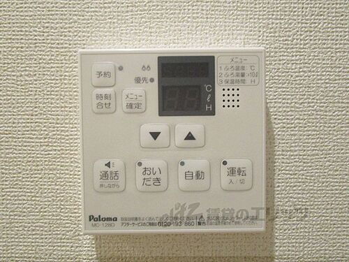 | 設備 | 上水道・プロパンガス・本下水・バス・トイレ別・シャワー・コンロ2口以上・給湯・追焚機能・シャンプードレッサ・エアコン・室内洗濯機置き場・BS端子・オートロック・バルコニー・フローリング・駐輪場・インターネット対応・モニタ付インターホン・温水洗浄便座・浴室乾燥機・洗面所独立・防犯カメラ・クローゼット・シューズボックス・照明器具 | ||||