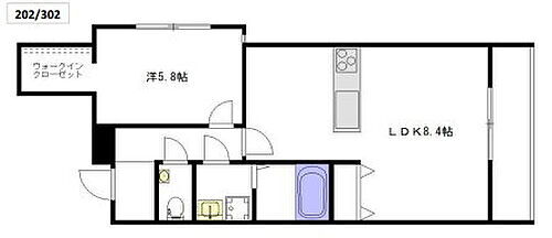 1LDK(洋 5.8 LDK 8.4) |