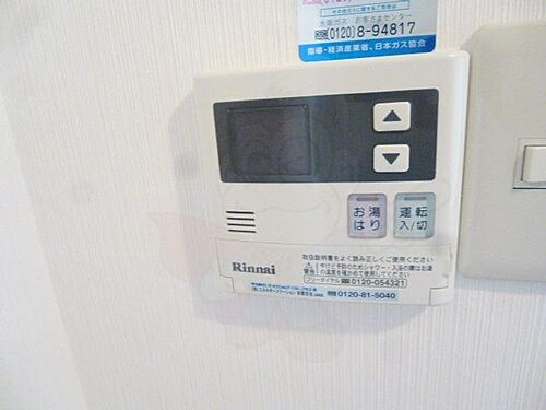 上水道・都市ガス・本下水・シャワー・IHクッキングヒータ・給湯・エアコン・洗濯機置場・BS端子・バルコニー・フローリング・駐輪場・バイク置き場・インターネット対応・モニタ付インターホン・クローゼット・シューズボックス・照明器具 |