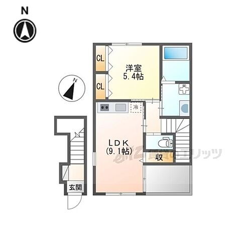 | 専有面積 | 44.3㎡ | 所在階/階数 | 2階/2階建 |