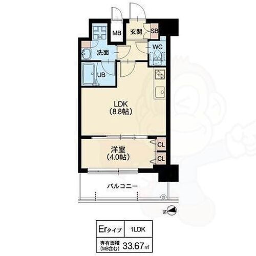 | 専有面積 | 33.67㎡ | 所在階/階数 | 9階/11階建 |