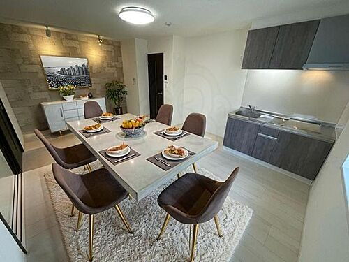 | 設備 | 上水道・都市ガス・本下水・バス・トイレ別・シャワー・IHクッキングヒータ・コンロ2口以上・システムキッチン・給湯・エアコン・室内洗濯機置き場・CS・BS端子・オートロック・バルコニー・フローリング・宅配BOX・駐輪場・インターネット対応・モニタ付インターホン・温水洗浄便座・浴室乾燥機・洗面所独立・防犯カメラ・インターネット無料・クローゼット | ||||