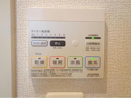 | 設備 | 上水道・都市ガス・本下水・バス・トイレ別・シャワー・追焚機能・シャンプードレッサ・エアコン・床下収納・ウォークインクローゼット・室内洗濯機置き場・BS端子・バルコニー・フローリング・駐輪場・モニタ付インターホン・温水洗浄便座・カウンターキッチン・浴室乾燥機・洗面所独立・防犯カメラ・クローゼット・シューズボックス | ||||