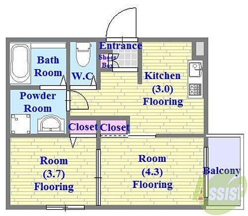 | 間取り | 2K | 築年月(築年数) | 2015年12月(築10年1ヶ月) |