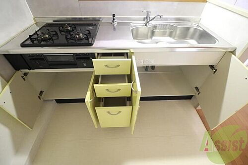 | 設備 | 上水道・本下水・バス・トイレ別・シャワー・ガスコンロ可・コンロ2口以上・システムキッチン・給湯・シャンプードレッサ・室内洗濯機置き場・CATV・バルコニー・フローリング・駐輪場・インターネット対応・モニタ付インターホン・カウンターキッチン・洗面所独立・クローゼット・照明器具 | ||||