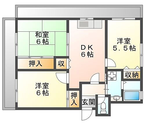 | 間取り | 3DK(洋 6・4.5 和 6 DK 6) | 築年月(築年数) | 1995年4月(築30年9ヶ月) |