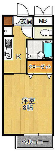 | 間取り | 1K | 築年月(築年数) | 1999年4月(築26年8ヶ月) |