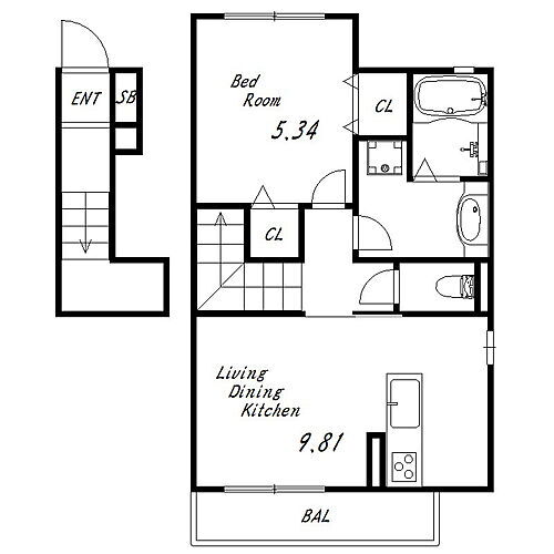 | 専有面積 | 44.69㎡ | 所在階/階数 | 2階/2階建 |