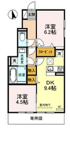 | 間取り | 2DK(DK 9.4 洋 6.2・4.5) | 築年月(築年数) | 2016年8月(築9年4ヶ月) |