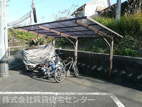上水道・プロパンガス・浄化槽・バス・トイレ別・シャワー・給湯・エアコン・室内洗濯機置き場・BS端子・専用庭・フローリング・駐輪場・バイク置き場・モニタ付インターホン・温水洗浄便座・防犯カメラ・クローゼット・シューズボックス・照明器具 |
