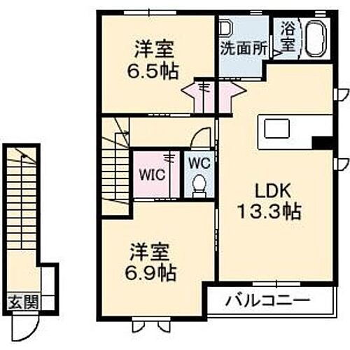 2LDK(LDK 13.3 洋 6.9・6.5) |