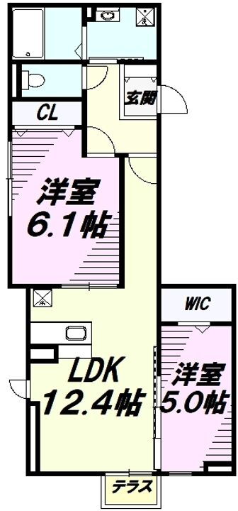 2LDK(LDK12.4帖、洋6.1帖、洋5帖) |