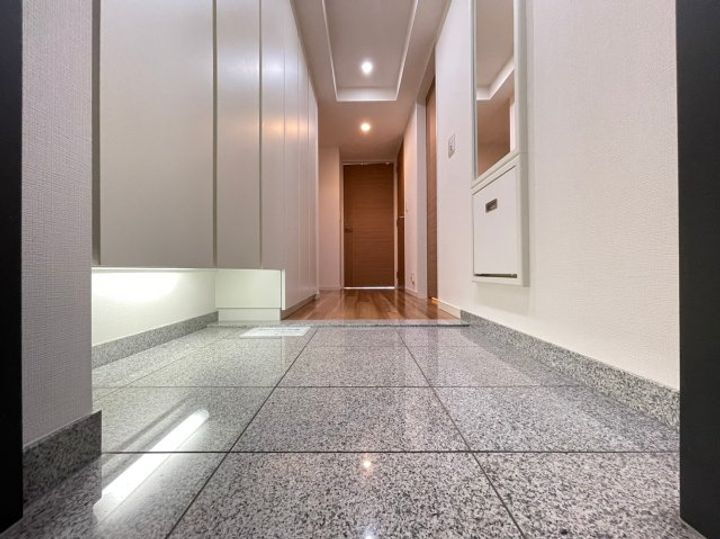 | 設備 | 防犯カメラ・光ファイバー(ブロードバンド)・システムキッチン・カウンターキッチン・IHクッキングヒータ・コンロ2口以上・バス・トイレ別・追焚機能・浴室乾燥機・洗面所独立・温水洗浄便座・エアコン・床暖房・ウォークインクローゼット・BS端子・CS・CATV・インターネット対応・オートロック・モニタ付インターホン・宅配BOX・フローリング・室内洗濯機置き場・バルコニー・エレベーター・駐車場・駐輪場・バイク置き場・都市ガス・食器洗浄乾燥機・ディスポーザー・浄水器 | ||||