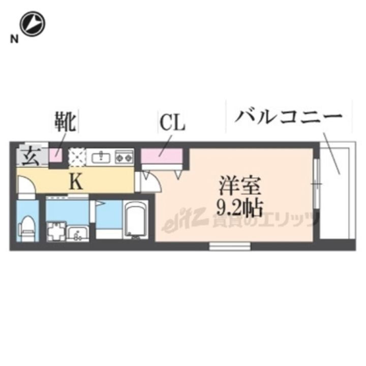 1K(K 2帖、洋室 9帖) |