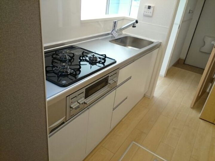 | 設備 | 防犯カメラ・システムキッチン・カウンターキッチン・ガスコンロ・コンロ2口以上・バス・トイレ別・追焚機能・浴室乾燥機・洗面所独立・温水洗浄便座・エアコン・床下収納・BS端子・CS・インターネット対応・モニタ付インターホン・フローリング・室内洗濯機置き場・バルコニー・駐車場・駐輪場・プロパンガス・敷地内ゴミ置場 | ||||