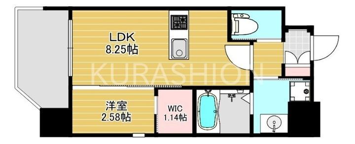 1LDK(LDK 8.2帖、洋室 2.5帖) |