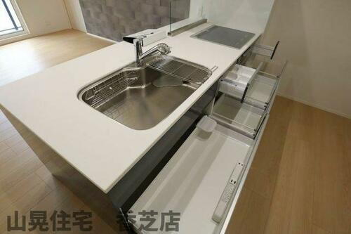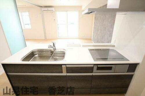 | キッチン | システムキッチン、カウンターキッチン、IHクッキングヒータ、3口以上コンロ |