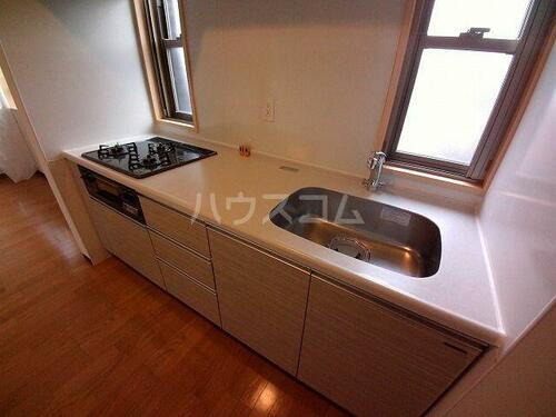 | キッチン | ガスコンロ可、システムキッチン、カウンターキッチン、3口以上コンロ |