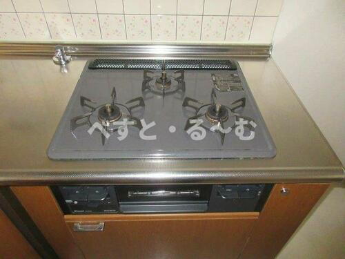 | キッチン | ガスコンロ可、システムキッチン、カウンターキッチン、3口以上コンロ |