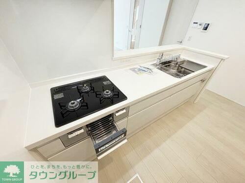 | キッチン | システムキッチン、カウンターキッチン、3口以上コンロ |