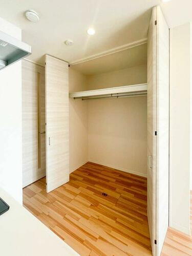 大型収納あり、洋服も掛けられます。