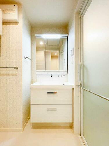 三面鏡付き独立洗面台です。朝の身支度に便利です。