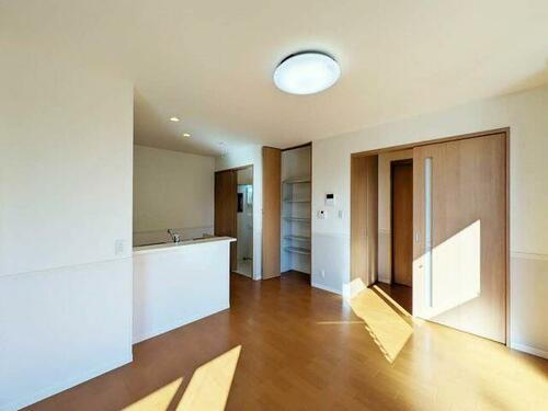 10.2帖のリビングです。対面キッチン間取りのお部屋となります。