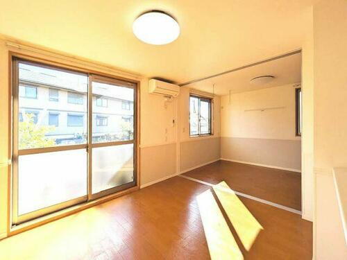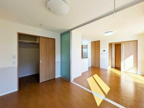 リビングには大きな掃き出し窓がございます。洋室の扉を開けて使うと大空間としてご利用いただけます。