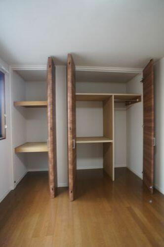 【収納】壁面の収納スペースは大きく扉が開くので、しまってあるものが一目でわかり出し入れも簡単ですよ…