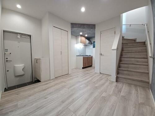 内階段で階が分かれ、戸建てと同じような居住空間となります。上階の物音も気になりません。屋上付き!