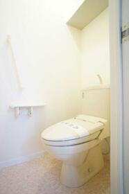 暖房洗浄便座付きのトイレです。上部に収納棚がありますので、ちょっとした荷物を置けます。
