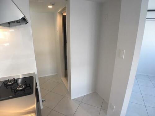 キッチン後ろには冷蔵庫を置けるスペースがありますね。
