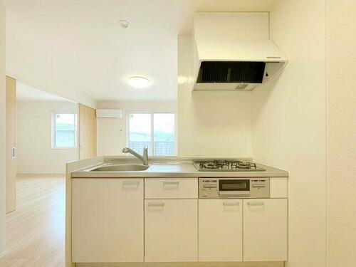 | キッチン | ガスコンロ可、システムキッチン、カウンターキッチン、浄水器、3口以上コンロ |