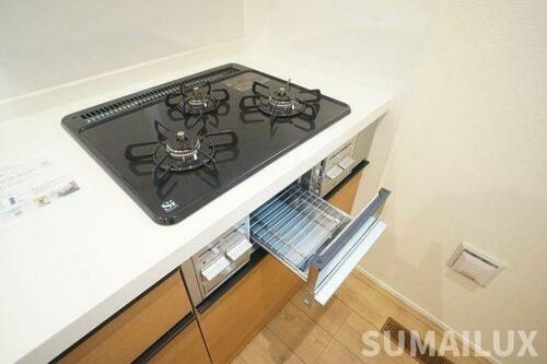 | キッチン | ガスコンロ可、システムキッチン、カウンターキッチン、3口以上コンロ |