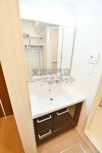 | 室内設備 | 冷房、エアコン、洗濯機置場、洗面所、洗面台、フローリング、照明器具、シャンプードレッサ、洗面所独立、室内洗濯機置き場 |