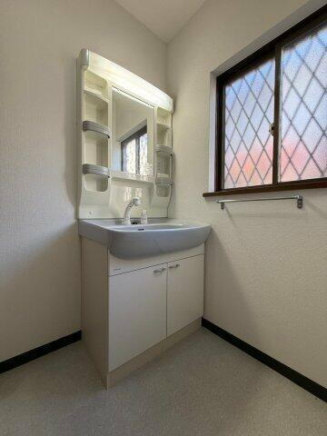玄関先まで覗き穴を覗きに行かなくてもインターホン越しに誰が来たのかを確認できます。化粧品や洗面道具といった小物をまとめて収納できる洗面化粧台があります。テラスがあり、洗濯物を雨露で濡らす心配がありません。