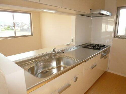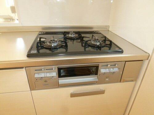 | キッチン | ガスコンロ可、システムキッチン、カウンターキッチン、3口以上コンロ |