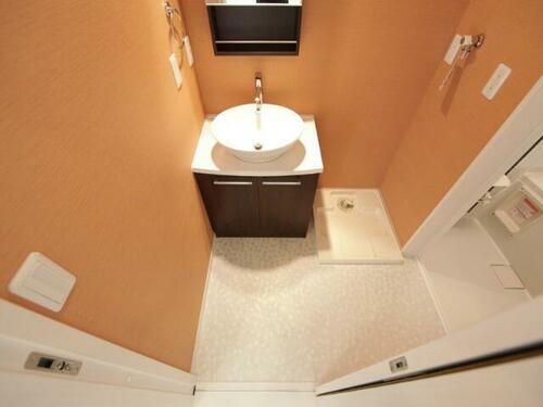 脱衣所 オシャレな独立洗面台付 室内洗濯機置き場