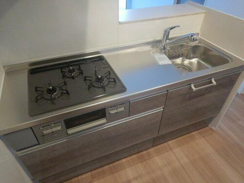 | キッチン | ガスコンロ可、システムキッチン、カウンターキッチン、3口以上コンロ |