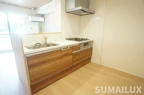| キッチン | ガスコンロ可、システムキッチン、カウンターキッチン、3口以上コンロ |