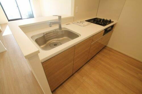 | キッチン | ガスコンロ可、システムキッチン、カウンターキッチン、3口以上コンロ |